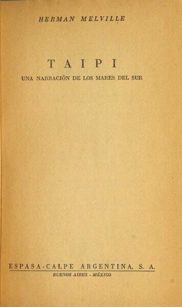 10. [Typee, in Spanish.] Taipi: una narración de los mares del sur. [Traducción de J. Dóriga]. Buenos Aires: Espasa-Calpe Argentina S.A., [1950].