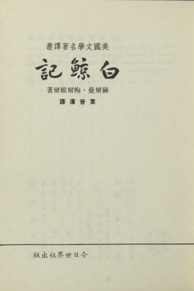 91. [Moby Dick, in Korean.] 白鯨 = Paekkyŏng = Moby Dick. [Translated by Ka-hyŏng Yi]. [Seoul: Dongshu Publishing Company, 1979].