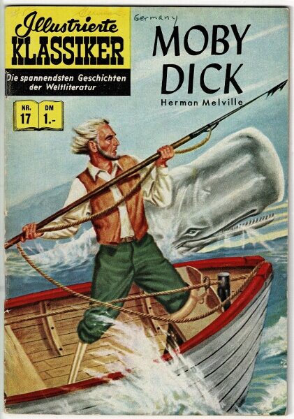 9¾" x 7¾", pp. 47, [1]; printed in comic-book form and in color throughout; includes a full-page biography of Melville; Newberry Library duplicate with bookplate and discreet release stamp; some wear and wrinkling, but still good, sound, and clean.